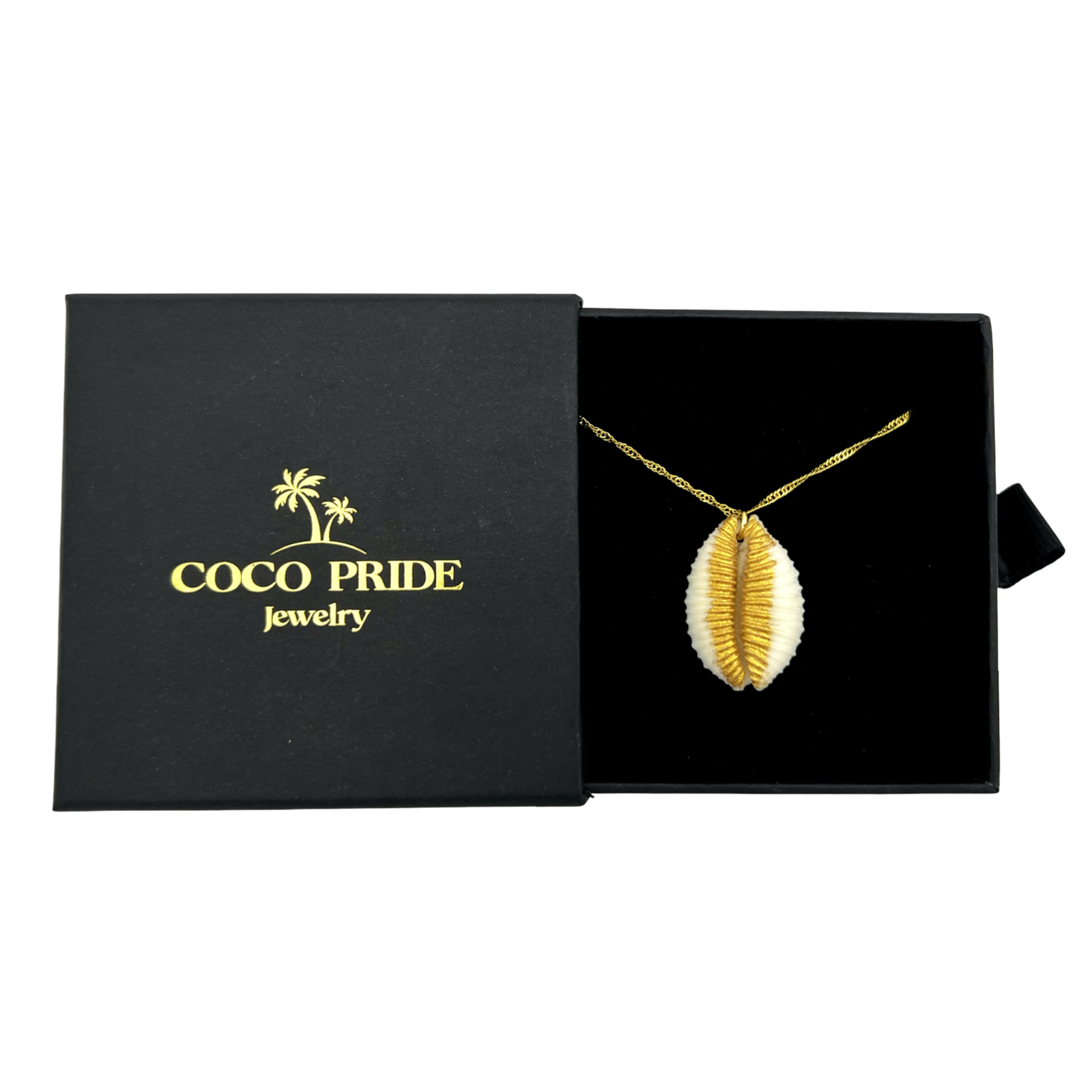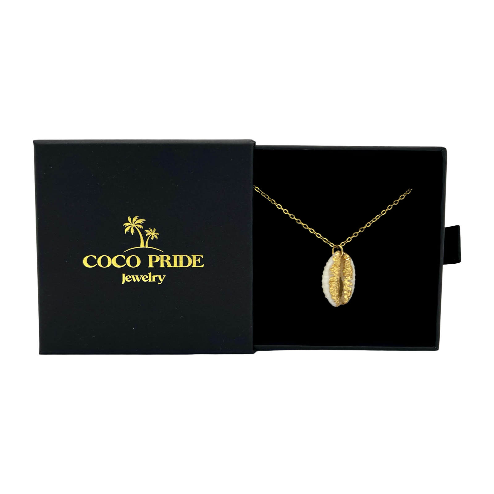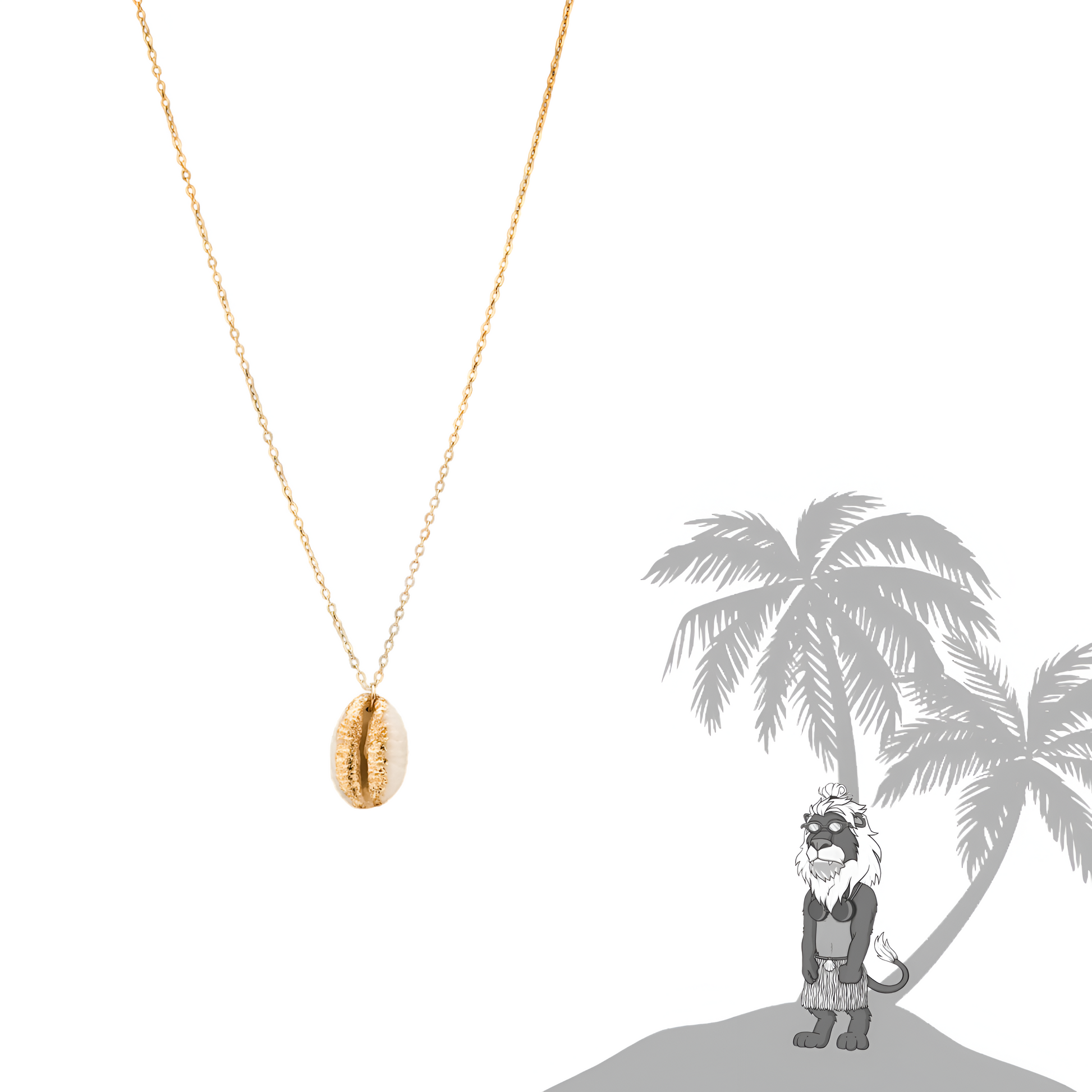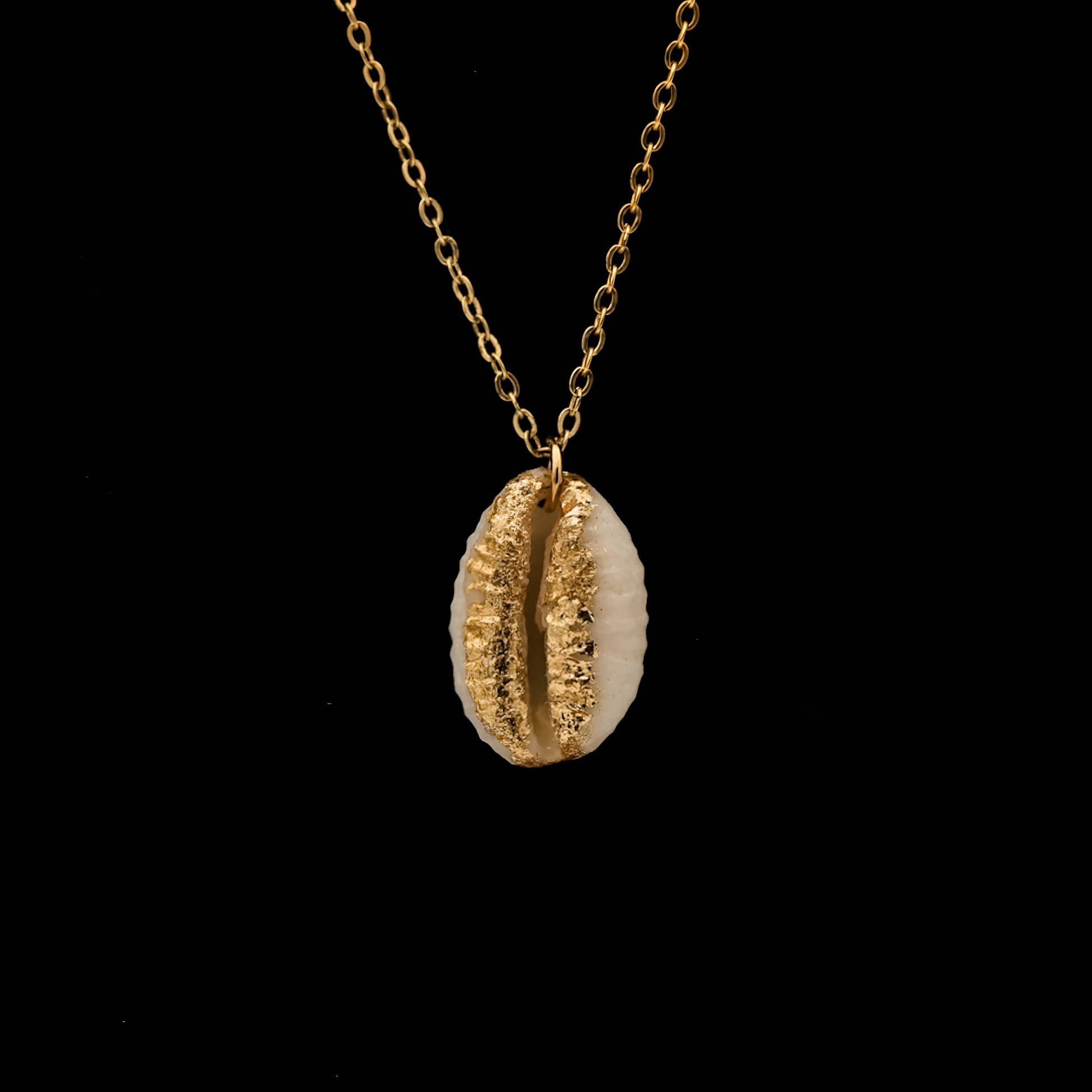 The Golden Coffee Bean Necklace is a rare treasure crafted from the ocean herself. This authentic Hawaiian shell was discovered during one of our monthly beach cleanups and transformed into a one-of-a-kind piece, accented with gold flakes and resin.