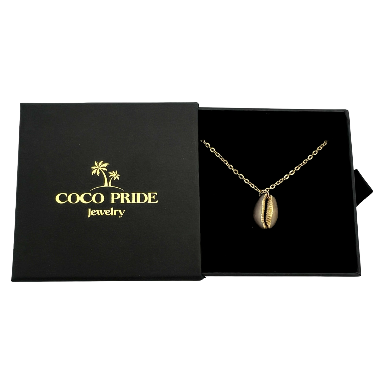 The Golden Cowrie Necklace is a rare island treasure known for its smooth surface and unique markings. Symbolizing protection and strength, this authentic Hawaiian shell was collected during one of our monthly beach cleanups and transformed with gold flakes and resin.