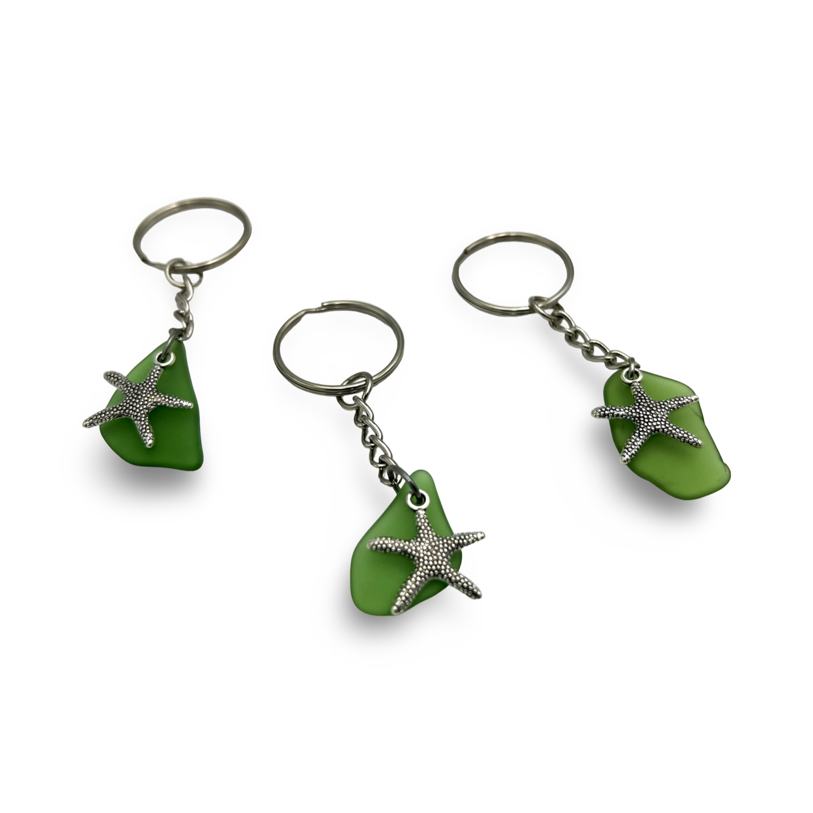 Hōkū means “star” in Hawaiian—a quiet guiding light in the night sky and a peaceful ocean companion in the depths below. Crafted with authentic Hawaiʻi sea glass and paired with a sea star charm on a 2" keyring.