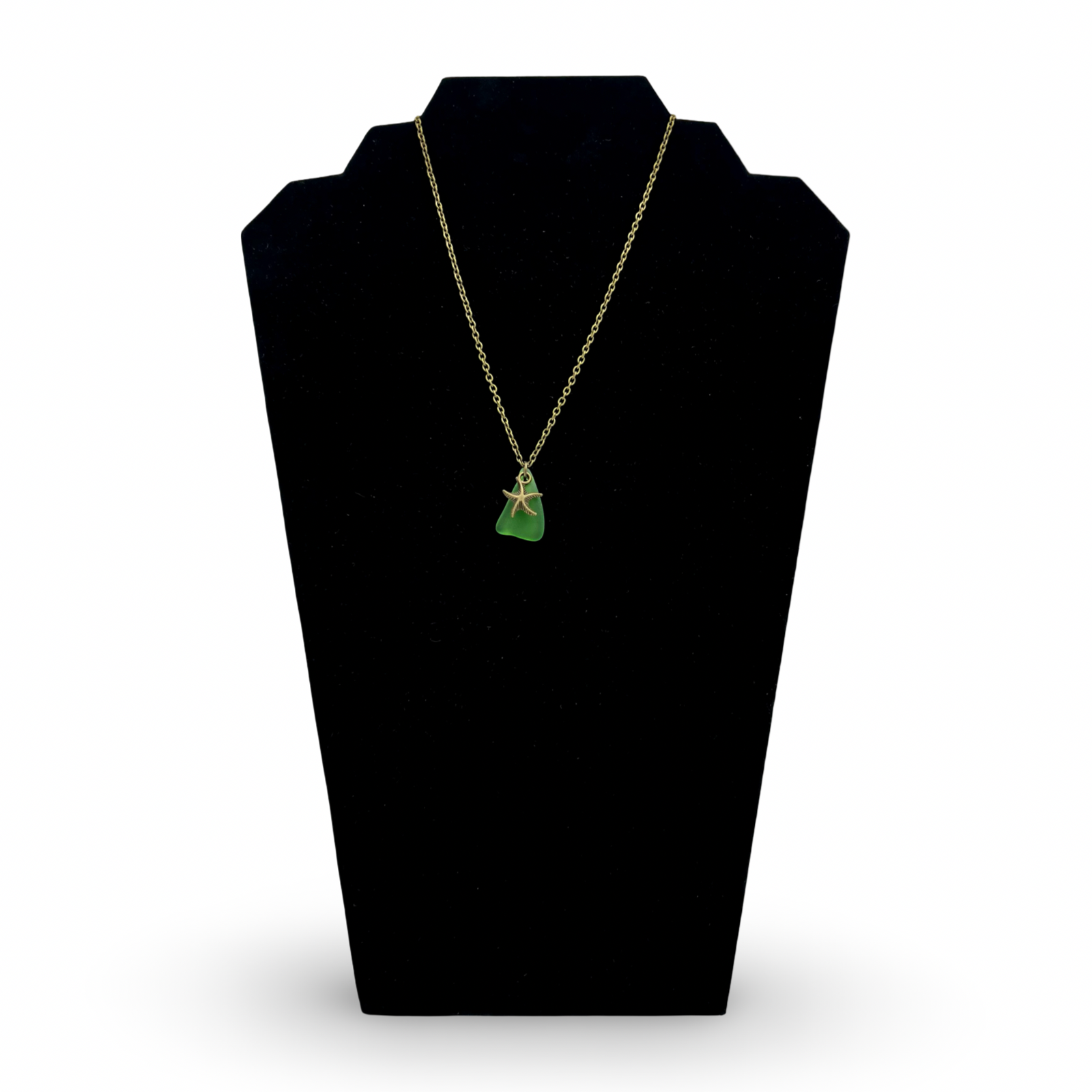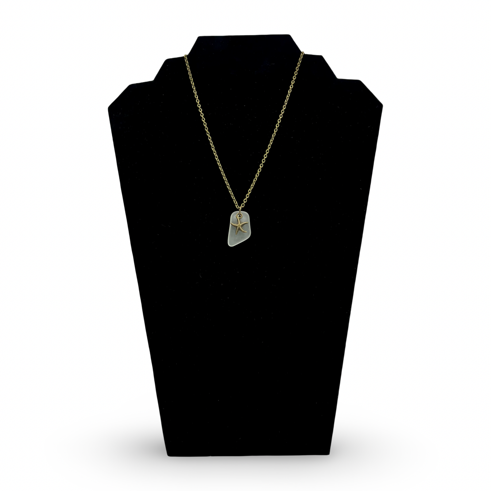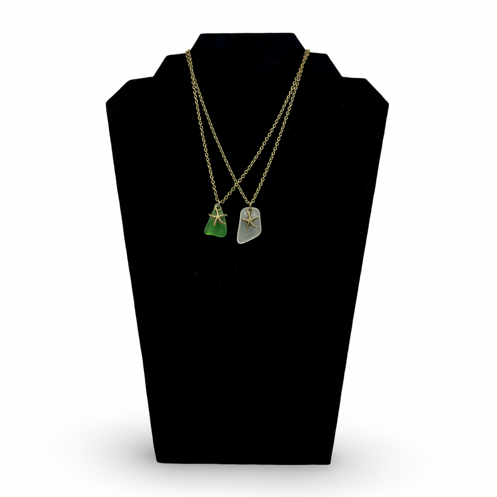 Our Mini Hōkū Necklace, or “star” in Hawaiian, is a delicate bronze chain—available in 14"—featuring a sea star charm paired with authentic Hawaiʻi sea glass.