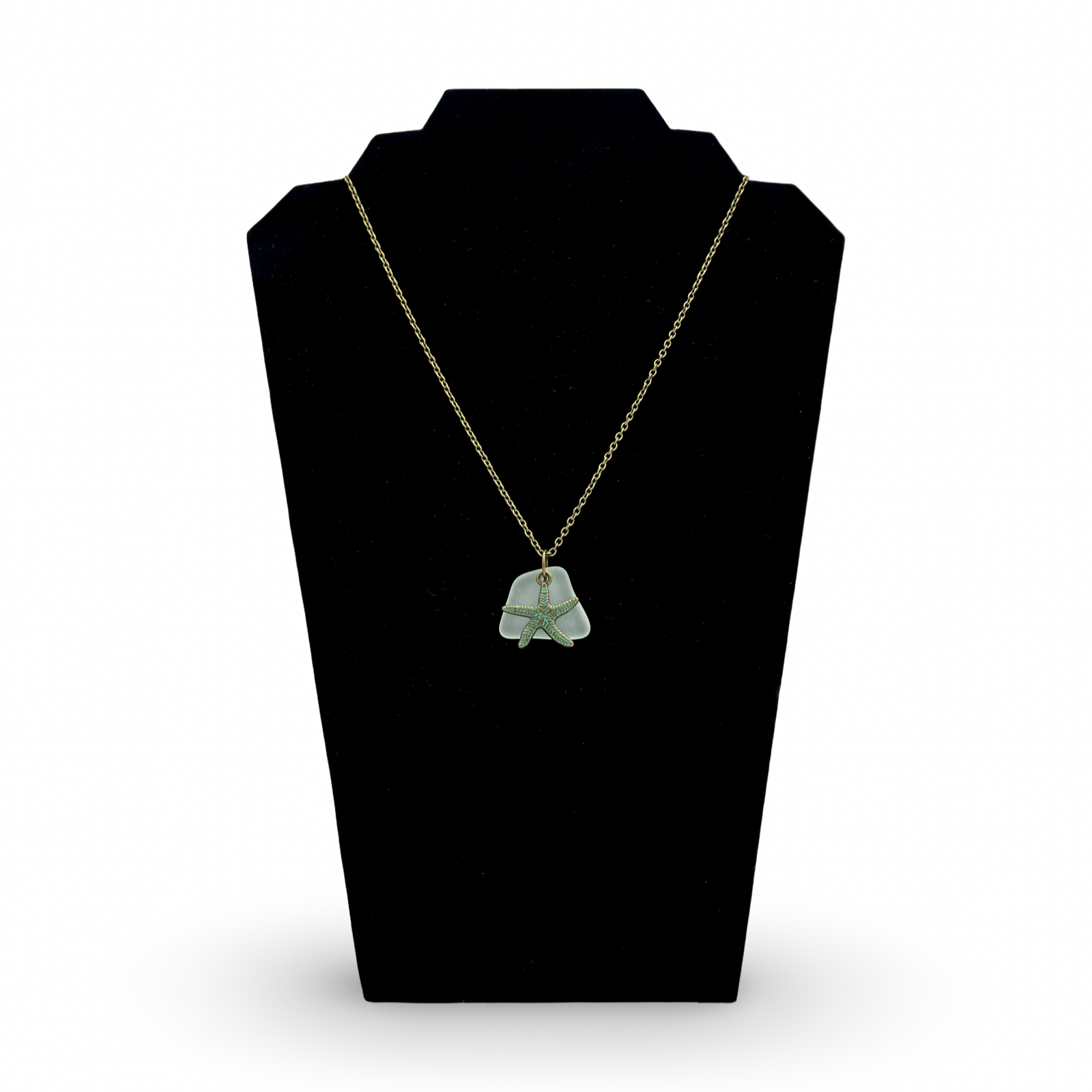 Our Hōkū Necklace, or “star” in Hawaiian, is a delicate bronze chain—available in 18" or 24"—featuring a sea star charm paired with authentic Hawaiʻi sea glass.